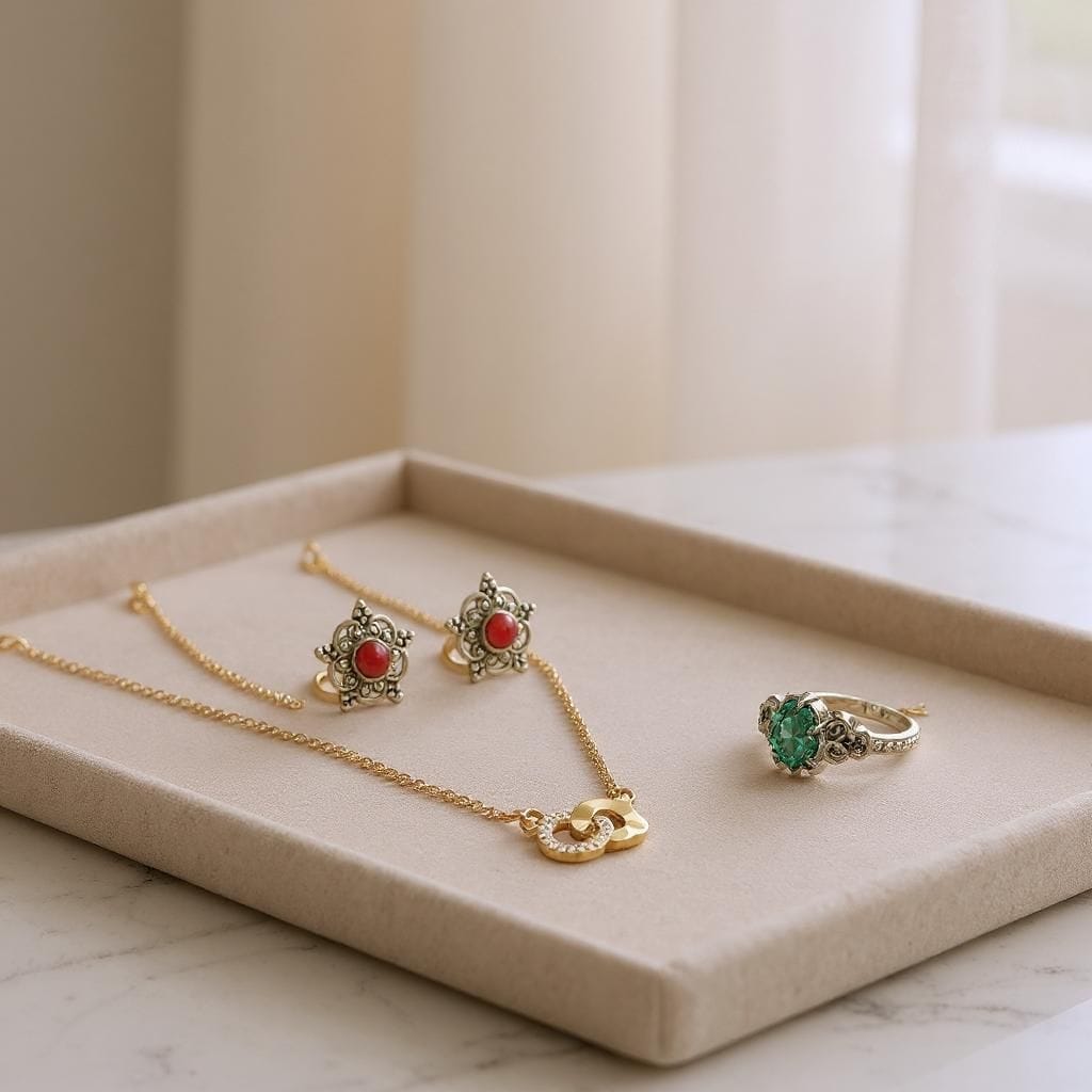 From red Monalisa stones to delicate gold plating, every piece is meant to blend tradition with everyday grace.